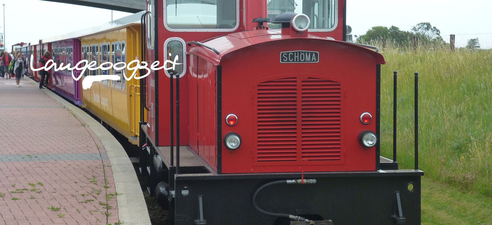 Nach Übersetzen der Fähre empfängt Sie die hübsche und farbenfrohe Langeooger Inselbahn am Hafen und fährt Sie in kurzer Zeit durch das wunderschöne Naturschutzgebiet zum Langeooger Bahnhof, von wo Sie auf kurzem Fußweg unsere Ferienwohnung "LANGEOOGZEIT" erreichen.